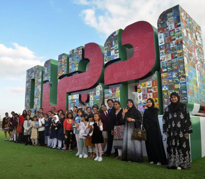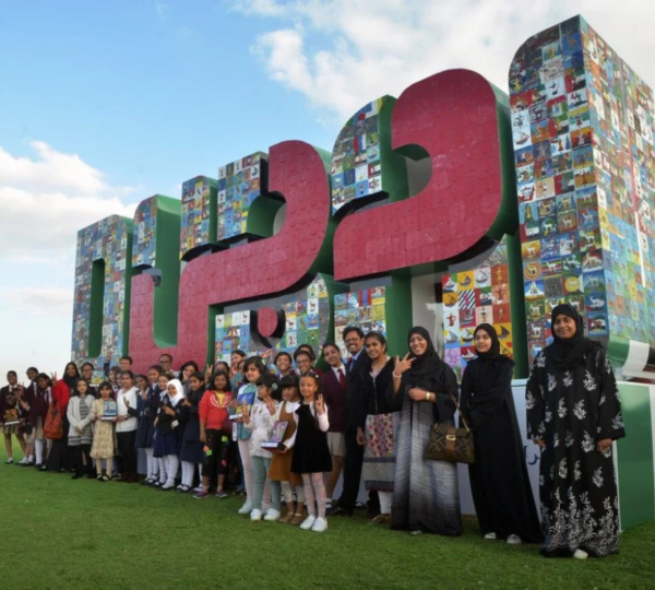 Global Village’s ‘Project Dirham’ celebrated UAE’s culture by engaging 15,000 students to create art inspired by national symbols, forming a ‘Dubai Logo’ installation for the UAE’s National Day celebrations.